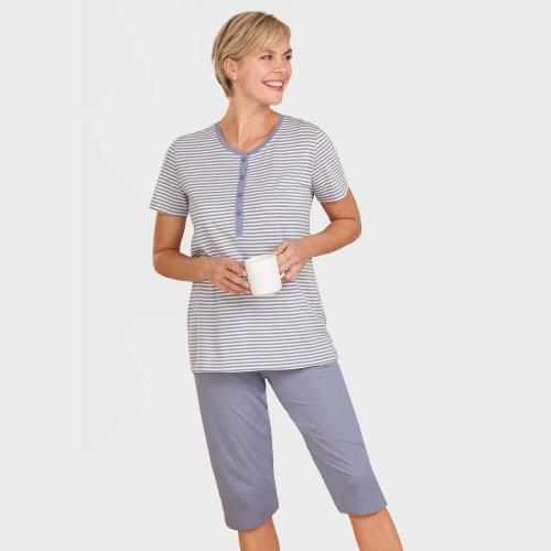 Les températures s’affolent ? Vous serez toujours au top du bien-être avec ce pyjacourt en maille Clim-Activ ! Respirante et thermorégulatrice, cette alliance de coton et microfibre polyester est un vrai bonheur en été.