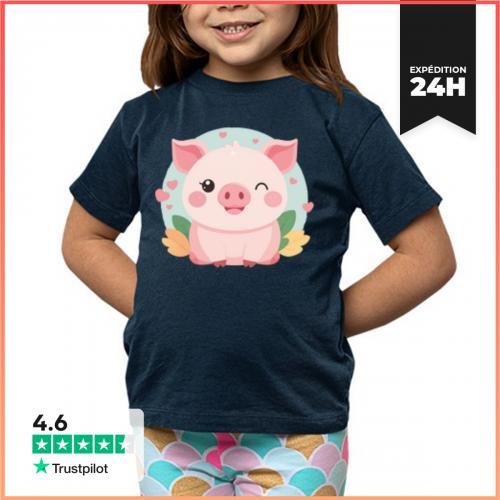 Tee Shirt Pour Enfant Manche Courte cochon kawaii