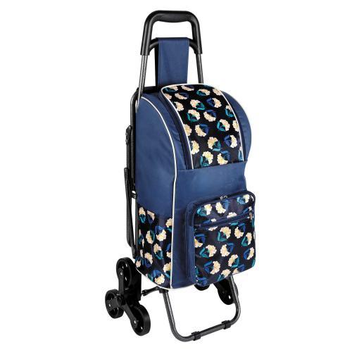 1- Les 6 roues de ce chariot permettent de monter trottoirs et escaliers sans effort. 2- D’une belle capacité, il dispose d’1 grand compartiment isotherme et 4 poches (2 zippées devant, 2 côtés). 3- Il intègre un siège en cas d’attente ou de fatigue. 4- Une fois ôté son cabas, il devient diable pour transporter des objets jusqu’à 80 kg.