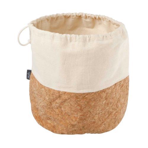 En coton et liège, matériaux naturellement respirants et anti moisissures, cette panière a une double fonction : sac à pain pour conserver dans des conditions optimales baguette tranchée et viennoiseries, elle devient corbeille en rabattant les bords et passe directement à table.