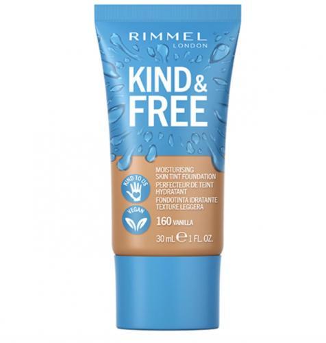 Rimmel London Kind & Free Moisturing Skin Tint Foundation 160 Vanilla. Made with 100% vegan & kind to animals ingredients.. Free from fragrance*, mineral oils, animal derived ingredients*.. Moisturises and perfects skin for a fresh, healthy-looking glow.. Clean formula gives skin the moisturisation it needs.. Infused with an anti oxidant complex with vitamin e, pro vitamin b5 and aloe vera.. Made with 77% ingredients of natural origins.. Lightweight, dewy finish gives a healthy glow instantly & all-day long hydration.. Non-comedogenic, dermatologist tested, suitable for sensitive skin.. How to apply:. Squeeze out a pea sized amount and apply to skin with your favourite method: finger tips, brush or sponge.. For more coverage simply apply a little more product until you get the desired look.. Size: 30ml