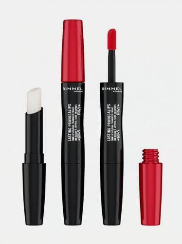 Rimmel London Lasting Provocalips 16HR Lipstick 740 Caught Red Lipped. A two-step colour and condition lip formula by Rimmel. The Lasting Finish Provocalips is a dual-ended liquid lip formula and hydra-balm top coat that locks the makeup in place for up to 16 hours.. The lightweight liquid lipstick packs a high-pigment payoff, while resisting transfer, smudging and flaking. The clear balm works to hydrate the lips, leaving them visibly soft and supple for longer.. Size: 2.3ml. HOW TO USE. Application: Apply the lip colour first and follow with the balm to set.